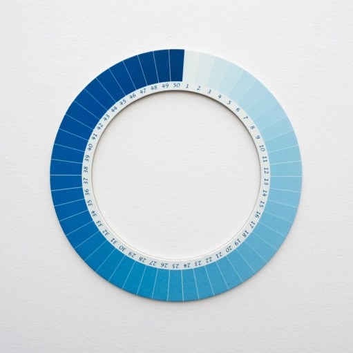 - Divide el círculo en secciones iguales. Puedes hacerlo usando el compás para trazar líneas radiales desde el centro del círculo hacia el borde. Dependiendo de la cantidad de tonos de azul que desees representar, puedes dividirlo en 10, 20 o más secciones.