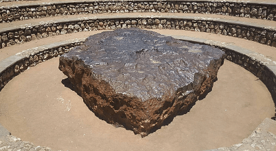 - Procedencia: Hoba es de origen meteórico, lo que significa que proviene del espacio exterior. No se ha identificado un cráter de impacto cercano, lo que sugiere que cayó en un estado estable sin explotar en la atmósfera, lo que es extremadamente raro. Se cree que el meteorito Hoba procede del cinturón principal de asteroides, que es una región entre las órbitas de Marte y Júpiter donde se encuentran numerosos fragmentos rocosos y metálicos. Su composición metálica, principalmente hierro y níquel, es consistente con la de los meteoritos metálicos que se originan en esta región del sistema solar. Sin embargo, no se ha identificado el cuerpo progenitor específico del que se desprendió el meteorito Hoba.