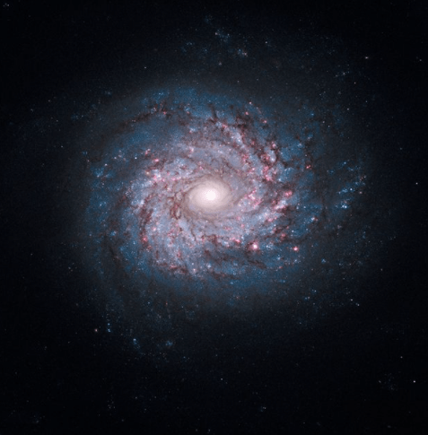 • Galaxias espirales: Tienen brazos espirales que se extienden desde un núcleo central. Estas galaxias suelen tener una mayor concentración de gas y polvo, lo que conduce a una formación activa de estrellas. Las estrellas en las galaxias espirales tienden a seguir órbitas más ordenadas en comparación con las galaxias elípticas. La rotación del disco es un factor importante en la dinámica de estas galaxias. Tenemos además dos suptipos de galaxias espirales:   a) Espiral Normal (S): Las galaxias espirales normales tienen brazos bien definidos y un núcleo central prominente.      b)Barradas (SB): Algunas galaxias espirales tienen una barra distintiva de estrellas a través del núcleo, clasificándose como barradas (por ejemplo, SBa, SBb, SBc).