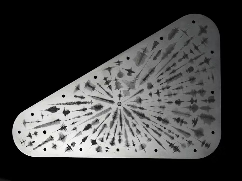 Se han recopilado grabaciones de audio en 103 idiomas y se han convertido en formas de onda para que muestren estos sonidos visualmente. Se grabaron estas formas de onda en la placa de metal que protege los sensibles componentes electrónicos de la nave espacial de la intensa radiación de Júpiter.