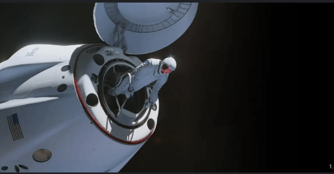 La nave espacial Crew Dragon, conocida por su diseño avanzado y tecnología punta, fue la encargada de llevar a la tripulación a esta impresionante altitud. SpaceX ha demostrado una y otra vez su capacidad para llevar a cabo misiones de gran complejidad y riesgo. En esta ocasión, la Crew Dragon fue adaptada para soportar las exigencias de un viaje a altitudes tan elevadas, lo que incluyó la adaptación de sistemas de soporte vital, comunicaciones y protección contra radiación. A medida que la nave ascendía, la tripulación disfrutó de vistas impresionantes de la Tierra desde una perspectiva que pocos han tenido el privilegio de experimentar. La oscuridad del espacio contrastaba con el brillo de nuestro planeta, creando una escena que subraya la fragilidad y belleza de la Tierra. Después a un altura nada desdeñable realizaron una pequeña salida fuera de la nave, lo que se llama un «paseo espacial» o EVA.