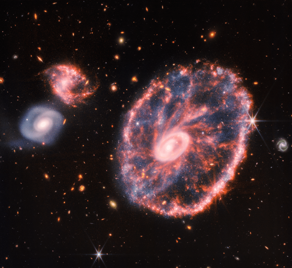 Cada longitud de onda tiene asignado un color específico que permite a los científicos observar detalles importantes de la estructura, temperatura y composición de los objetos. Por ejemplo, en una imagen en infrarrojo del telescopio James Webb, las áreas que emiten en longitudes de onda infrarrojas pueden verse en tonos rojos y naranjas.