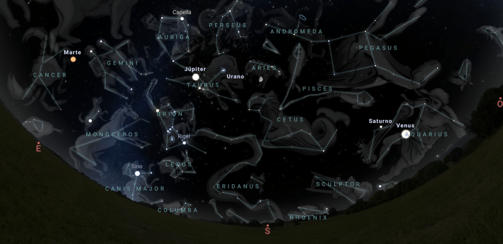 - Urano: Este planeta helado, de color azul verdoso, es un reto para los observadores. Con cielos oscuros y despejados, puede localizarse utilizando binoculares o telescopios.