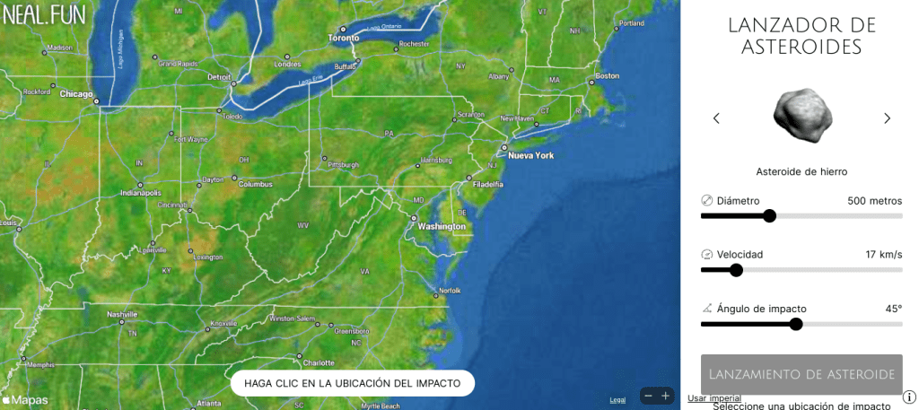 Lanzador de asteroides: https://neal.fun/asteroid-launcher/