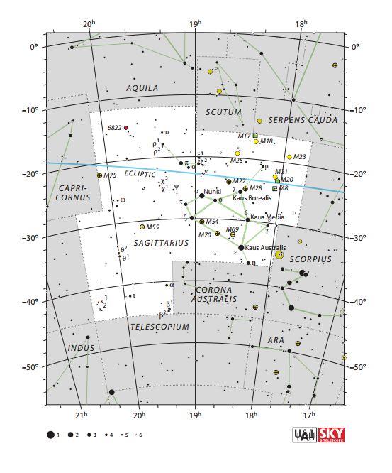 - M24: Un vasto racimo de estrellas ricas y extendidas de la Vía Láctea, justo al sur de M17 y M18.