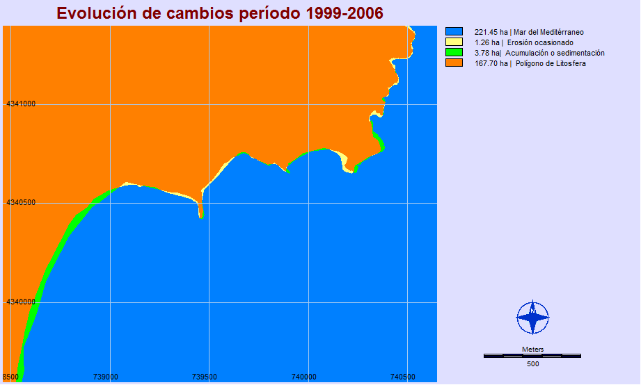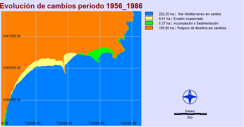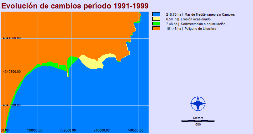 Por otro lado se demuestra que la estimación cuantitativa del número de hectáreas “ ganadas o perdidas” frente al Mar y obtenidas con el IDRISI, no es lo suficiente para explicar la tendencia evolutiva seguida por un sector costero, sino que un análisis completo debe tomar en consideración los complejos procesos naturales y humanos que están interactuando.