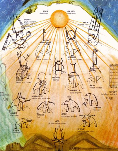 Los dioses y diosas egipcias eran numerosos y se representan en muchas pinturas y murales. Algunos dioses se representaban en las constelaciones, y en cuerpos astronómicos reales.
