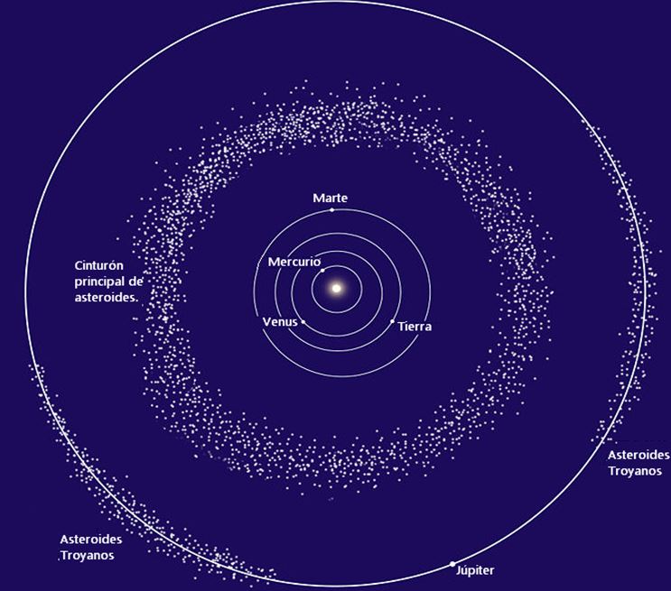 El cinturón principal de Asteroides (CP) se encuentra ubicado entre Marte y Júpiter, a una distancia del sol entre 2 y 3.6 UA, y esta formado por miles de asteroides, pero su masa total es aproximadamente 1/1000 de la masa de la Tierra, con lo que están muy dispersos entre sí. La imagen de muchas películas de ciencia ficción en la que las naves atraviesan zonas de asteroides esquivándolos es totalmente irreal para el caso del CP.